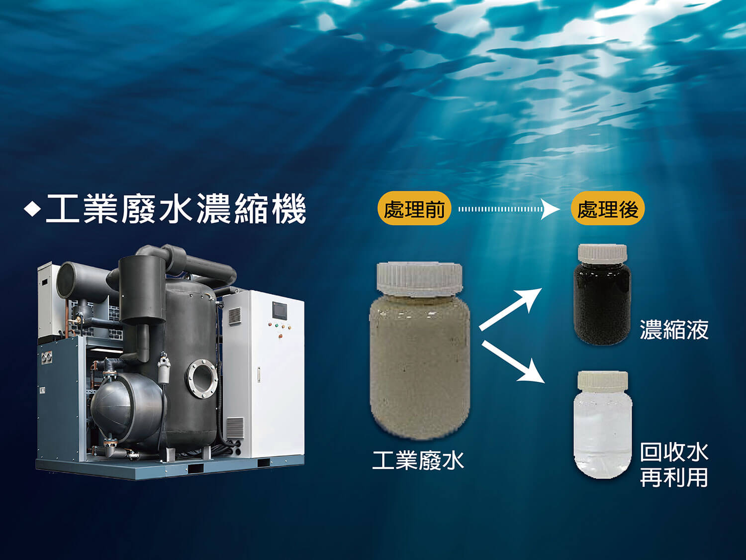 To tackle the persistent issue of industrial wastewater pollution, Taiwan Fimitech Co., LTD. has launched the “Industrial Wastewater Treatment Machine” equipped with a high-efficiency scroll-type heat pump compressor. Unlike traditional chemical treatment, this machine applies innovative vacuum evaporation-condensation technology, reducing wastewater volume to just 1/20 of its original amount. The remaining recycled water can be reused, achieving a green goal of zero discharge and zero pollution—making it a savior for industries facing wastewater challenges.